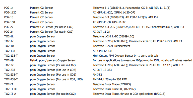 3T:  (TO2-133): 0 - 10ppm, 0 - 100ppm, 0 - 1000ppm, 0 - 10000 PPM 0 - 25%
